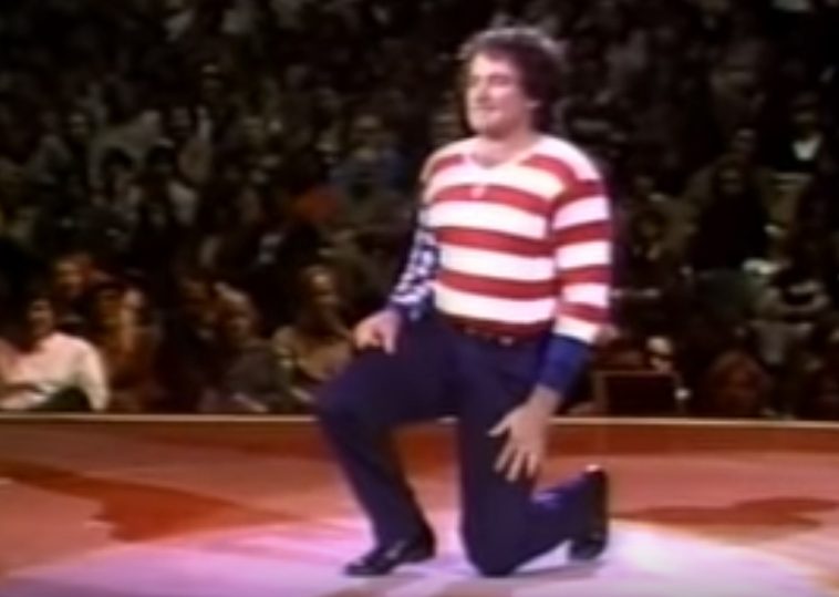 Wonder no longer as you witness Robin himself taking a knee, while DRESSED AS THE AMERICAN FLAG, in the archival video below…